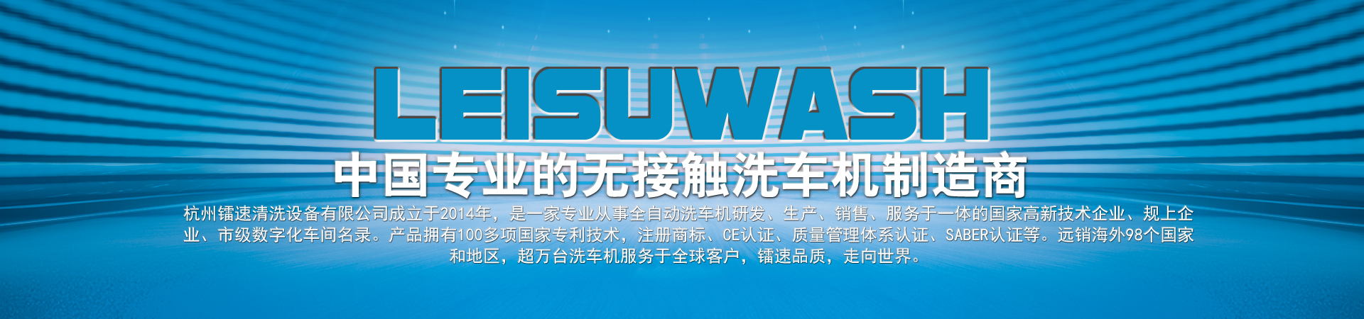 杭州鐳速清洗設(shè)備有限公司成立于2014年,是一家專業(yè)從事自動(dòng)洗車機(jī)研發(fā)、生產(chǎn)、銷售、服務(wù)于一體的國(guó)家高新技術(shù)企業(yè),注冊(cè)資金2000萬(wàn)元。匯聚了一批專業(yè)的技術(shù)創(chuàng)新團(tuán)隊(duì),與時(shí)俱進(jìn),不斷創(chuàng)新,研發(fā)生產(chǎn)出質(zhì)量過(guò)硬、技術(shù)領(lǐng)先的全智能電腦洗車設(shè)備,是國(guó)內(nèi)集洗護(hù)一體全自動(dòng)汽車清洗系統(tǒng)的開拓者和領(lǐng)跑者。 鐳速公司一步一個(gè)腳印,一步一個(gè)臺(tái)階,通過(guò)不斷的努力和鉆研,厚積薄發(fā),從一家名不經(jīng)傳的小企業(yè),走到今天,成為中國(guó)洗車機(jī)行業(yè)出口最多的企業(yè)。鐳速品質(zhì)正逐步成為中國(guó)洗車機(jī)行業(yè)的高品質(zhì)代名詞,真正進(jìn)入國(guó)際一線洗車機(jī)行列,打造贏得全球信賴的中國(guó)品牌!